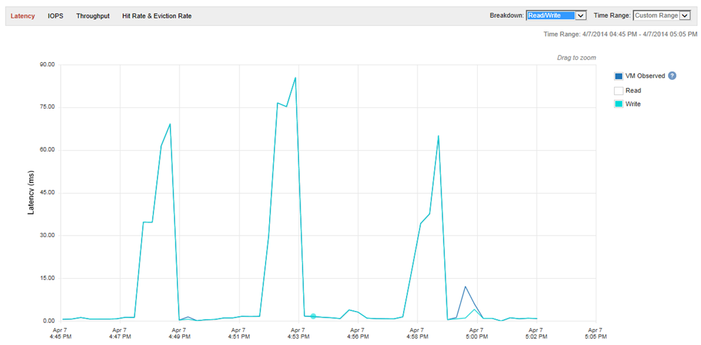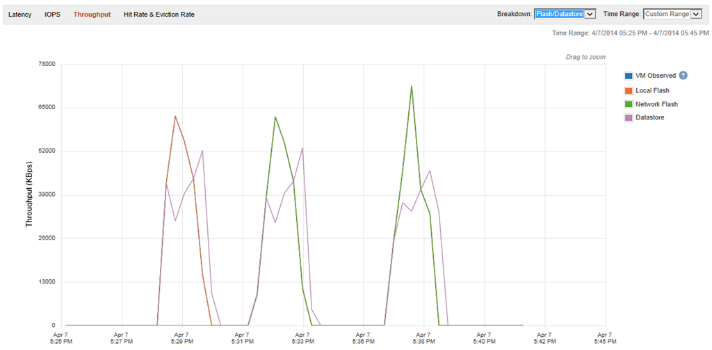 I tend to prefer testing that relies on observational patterns versus one final, empirical number. These tests were no different, and while they attempt to simulate a very brief snippet of a workload in my production environment, I find that I still gain a much better understanding from a time based performance graph than an insulated final number.