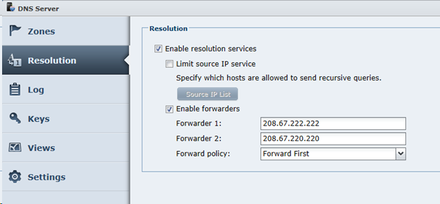 To make DNS immediately available during these power-up scenarios, the prevailing method in the “Keep it Simple Stupid” category has been running a separate physical DNS server. Either a Windows member server with a DNS role, or a Linux server with BIND. But it is a physical server, and us virtualization nuts hate that sort of thing. But wait! …There is one more option. Use your Synology NAS as an emergency backup DNS server. The intention of this is not to supplant your normal DNS infrastructure. it’s simply to help a few critical pieces of equipment start up.