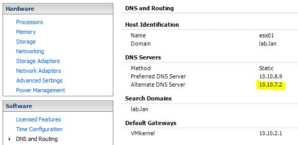 8. Complete the configuration, and test with a client using this IP address only for DNS, simply to verify that it is operating correctly. Then, go back and tighten up some of the security mechanisms as you see fit. Once that is completed, jump back into your ESXi hosts (and any other equipment) and configure your secondary DNS to use this server.